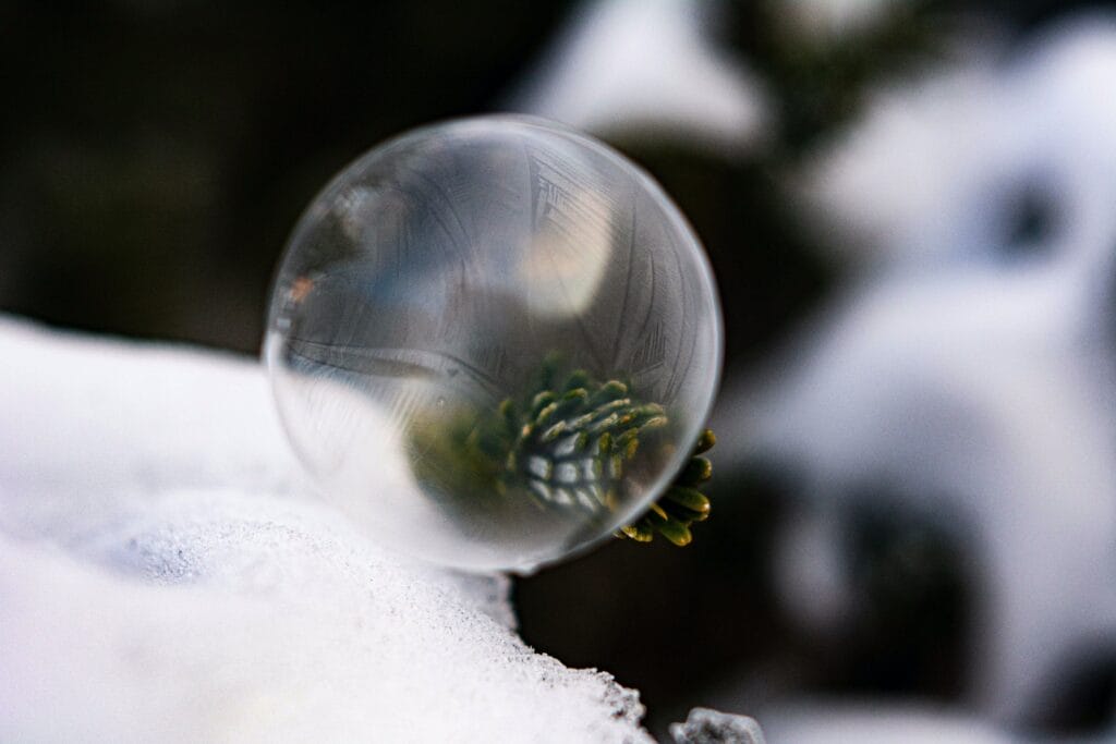 Om een zeepbel met een stevig oppervlak te veroorzaken moet je warm water met daarin opgeloste suiker en/of glycerine gebruiken. Bij vorst kun je dan ( uit de wind) ijsbloemen op je bel waarnemen.